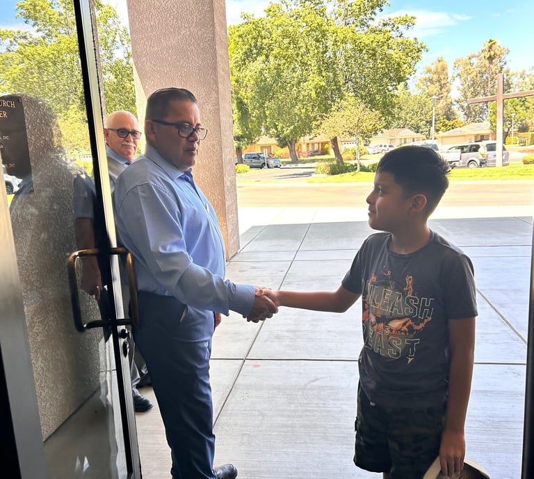¡Bienvenidos a nuestra familia de la iglesia! Estamos muy contentos de que se haya unido a nosotros hoy mientras nos reunimos para adorar y crecer en la fe. Como comunidad de creyentes, estamos llamados a compartir la palabra de Dios con valentía y a servir a los demás con amor y compasión. Ya sea a través de nuestras palabras o acciones, estamos llamados a reflejar la luz de Cristo en nuestras vidas y extender Su gracia a nuestro prójimo. Abramos nuestros corazones al mensaje del evangelio e inspírémonos para servir activamente a quienes nos rodean, marcando una diferencia real en nuestra comunidad. Gracias por ser parte de esta misión y que Dios los bendiga a cada uno de ustedes mientras caminamos juntos en Su amor y propósito..